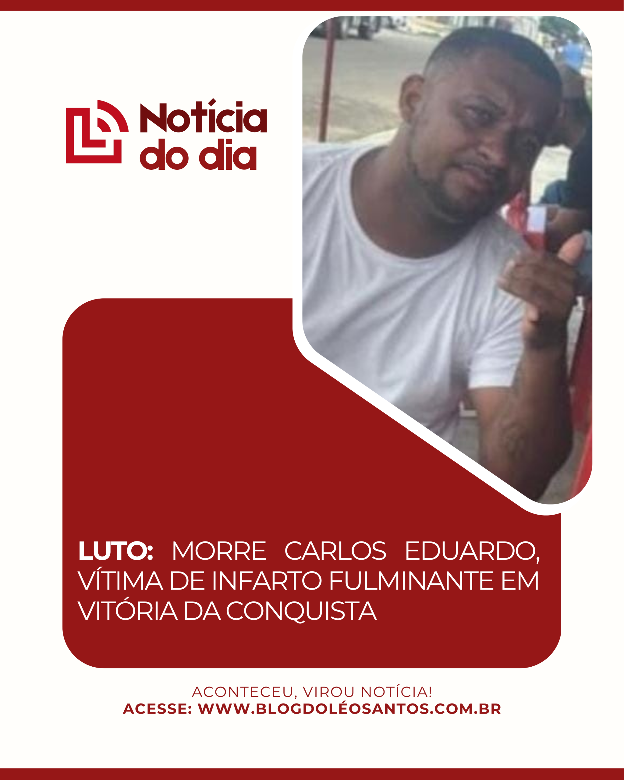 Com profundo pesar, o Blog do Léo Santos informa o falecimento de Carlos Eduardo, vítima de um infarto fulminante enquanto trabalhava neste fim de semana, em Vitória da Conquista.