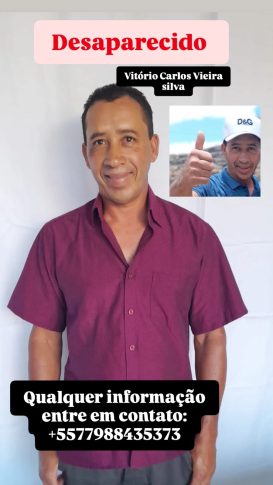 Familiares e amigos seguem mobilizados em buscas e pedem o apoio da população. Qualquer informação que possa ajudar a localizar Vitório Carlos Vieira Silva deve ser repassada imediatamente pelo telefone (77) 98843-5373.