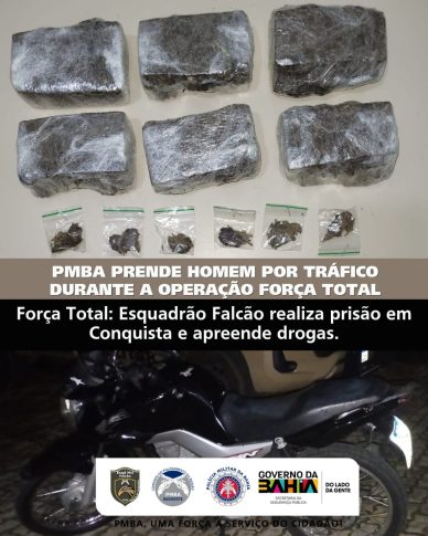 Uma ação rápida do Esquadrão de Motociclistas Falcão resultou na prisão de um jovem de 21 anos por tráfico de drogas no fim da tarde desta quinta-feira (26), em Vitória da Conquista. A ocorrência foi registrada por volta das 18h20, no bairro Alto Maron, durante a 52ª edição da Operação Força Total. (mais…)