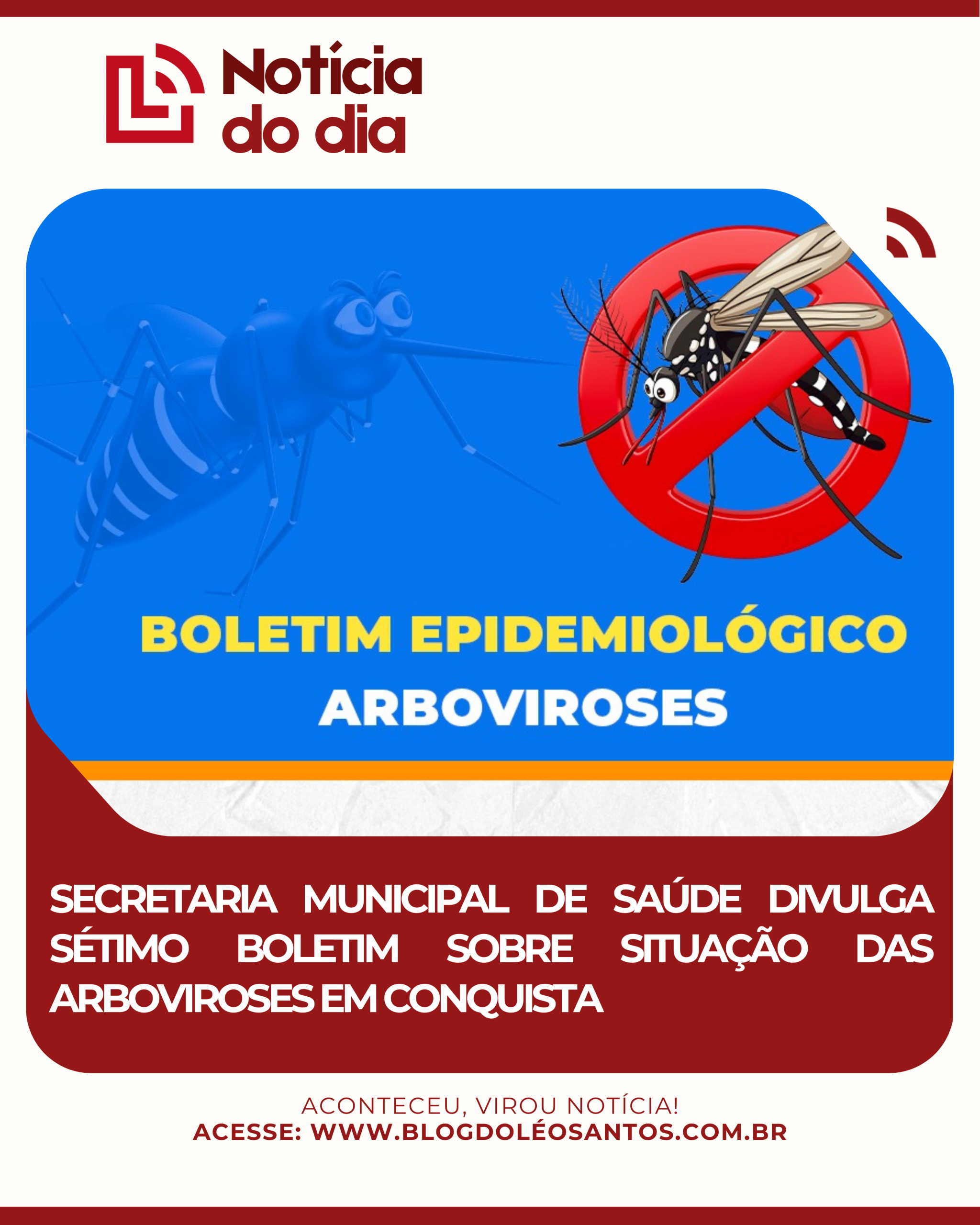 A Secretaria Municipal de Saúde acaba de atualizar os números das arboviroses em Vitória da Conquista com a divulgação do sétimo boletim epidemiológico de 2026. Na última semana, foram registradas 31 notificações suspeitas de dengue na cidade.
