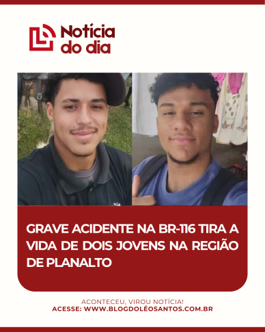 A noite deste sábado (28) foi marcada por uma tragédia no sudoeste baiano. Um grave acidente resultou na morte de dois jovens moradores do distrito de Lucaia, pertencente ao município de Planalto.