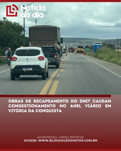 A manhã desta quarta-feira (08) começou com congestionamento no Anel Viário, na altura dos bairros Jardim Valéria e Santa Terezinha, no município de Vitória da Conquista. O trânsito ficou lento devido ao trabalho de máquinas e servidores no trecho, e a previsão é que continue dessa forma até a conclusão das intervenções.