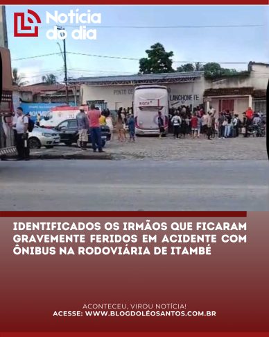 Foram identificados os dois irmãos que ficaram gravemente feridos na manhã desta segunda-feira (06), após serem atingidos por um ônibus intermunicipal que invadiu a rodoviária da cidade de Itambé. Trata-se de Danilson Ramos Santana, de 42 anos, e Danildo Ramos Santana, de 39 anos.