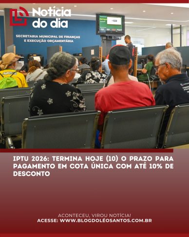 Termina nesta sexta-feira (10) o prazo para os contribuintes garantirem o desconto de 10% no pagamento em cota única do Imposto Predial e Territorial Urbano (IPTU 2026). Para aproveitar o benefício máximo, a emissão do boleto deve ser feita obrigatoriamente por meio digital, acessando o site oficial da Prefeitura Municipal de Vitória da Conquista.