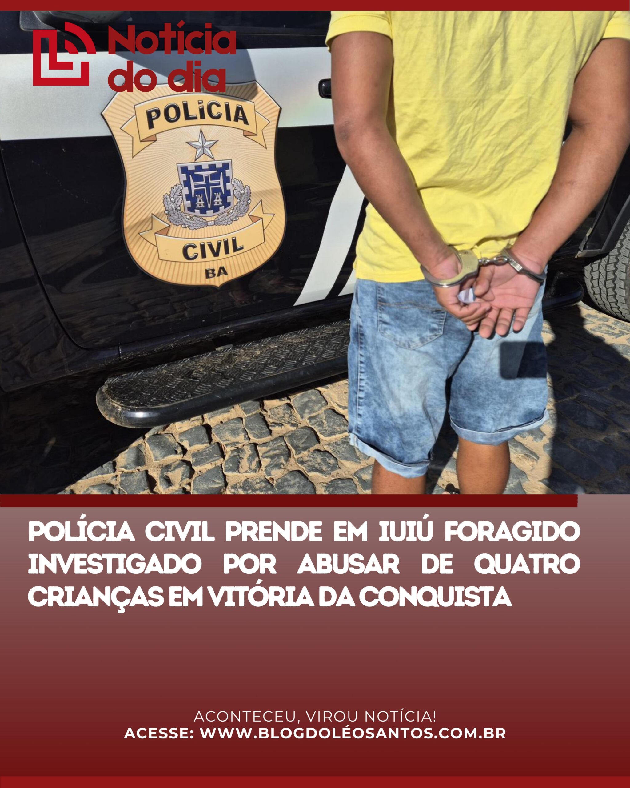 Nesta sexta-feira (17), a Polícia Civil da Bahia cumpriu um mandado de prisão preventiva contra um homem de 30 anos, identificado pelas iniciais C.S.O.S., investigado por praticar crimes sexuais contra crianças no município de Vitória da Conquista. (mais…)