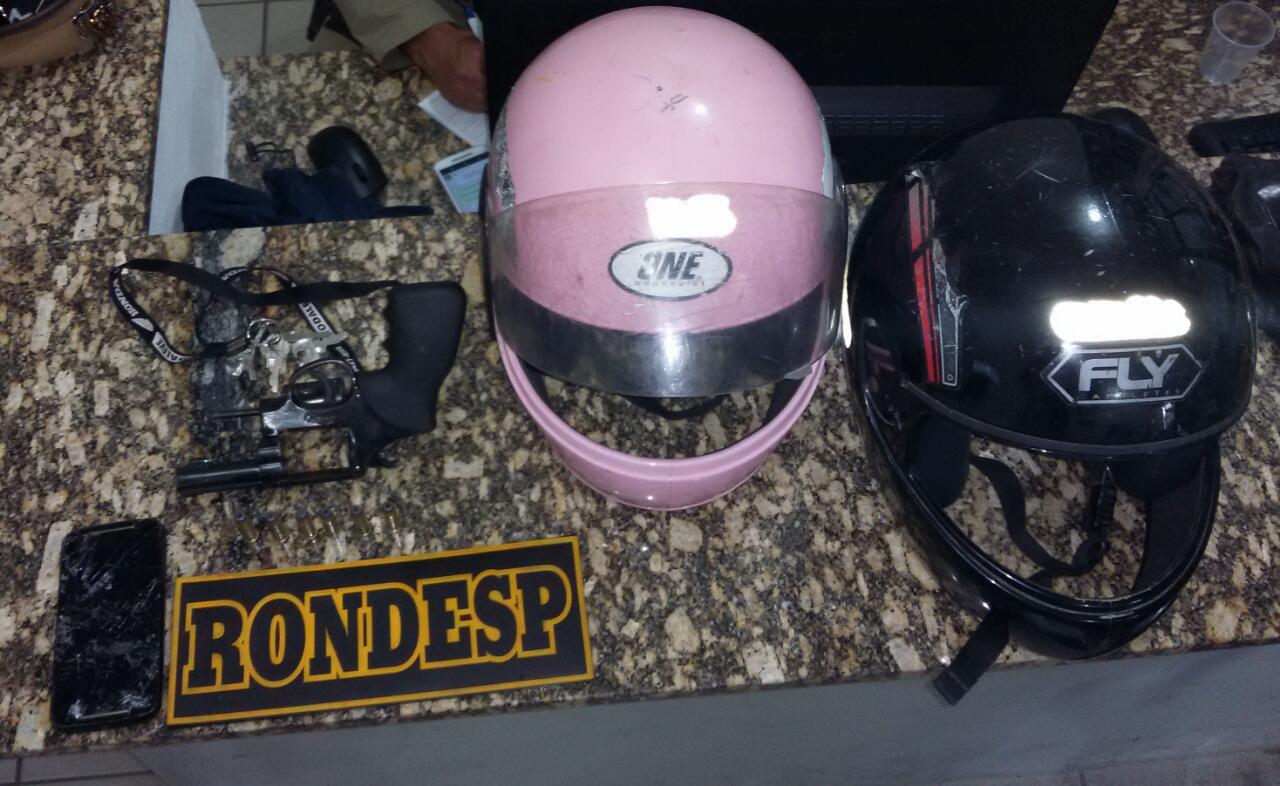 Os militares em rondas pelo bairro citado, avistaram a dupla em uma moto modelo CG titan de cor Vermelha. A dupla ao perceberem a presença dos militares, empreenderam fuga, e após colidir na lateral da Viatura, perderam o controle da moto e caíram em frente a Praça Gerson Sales. Com a dupla foi encontrado um revólver calibre .38, além da Moto (produto de roubo). Todo o material apreendido foi apresentado no Distrito de segurança pública (DISEP).