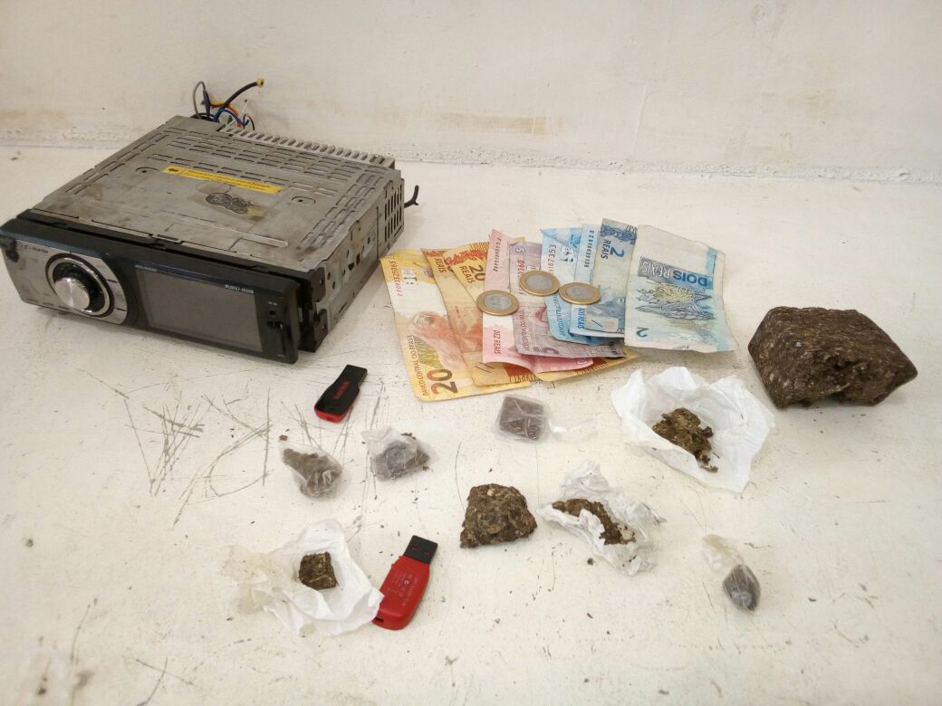 Chegando na praça Hercílio Lima, em uma barraca, os militares procederam com a abordagem onde foi encontrado 100 gramas e 9 petecas de uma substância análoga à maconha.