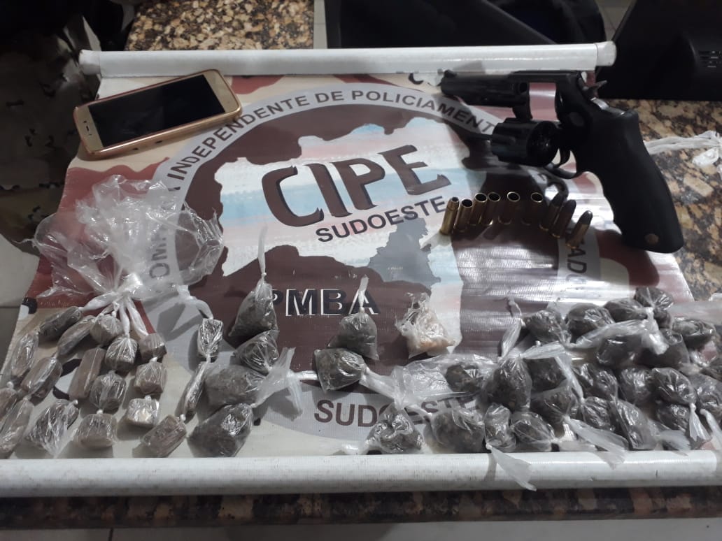 Chapadão já tinha diversas passagens pela polícia, na diligência os militares encontraram maconha além de um revólver com munições deflagradas.