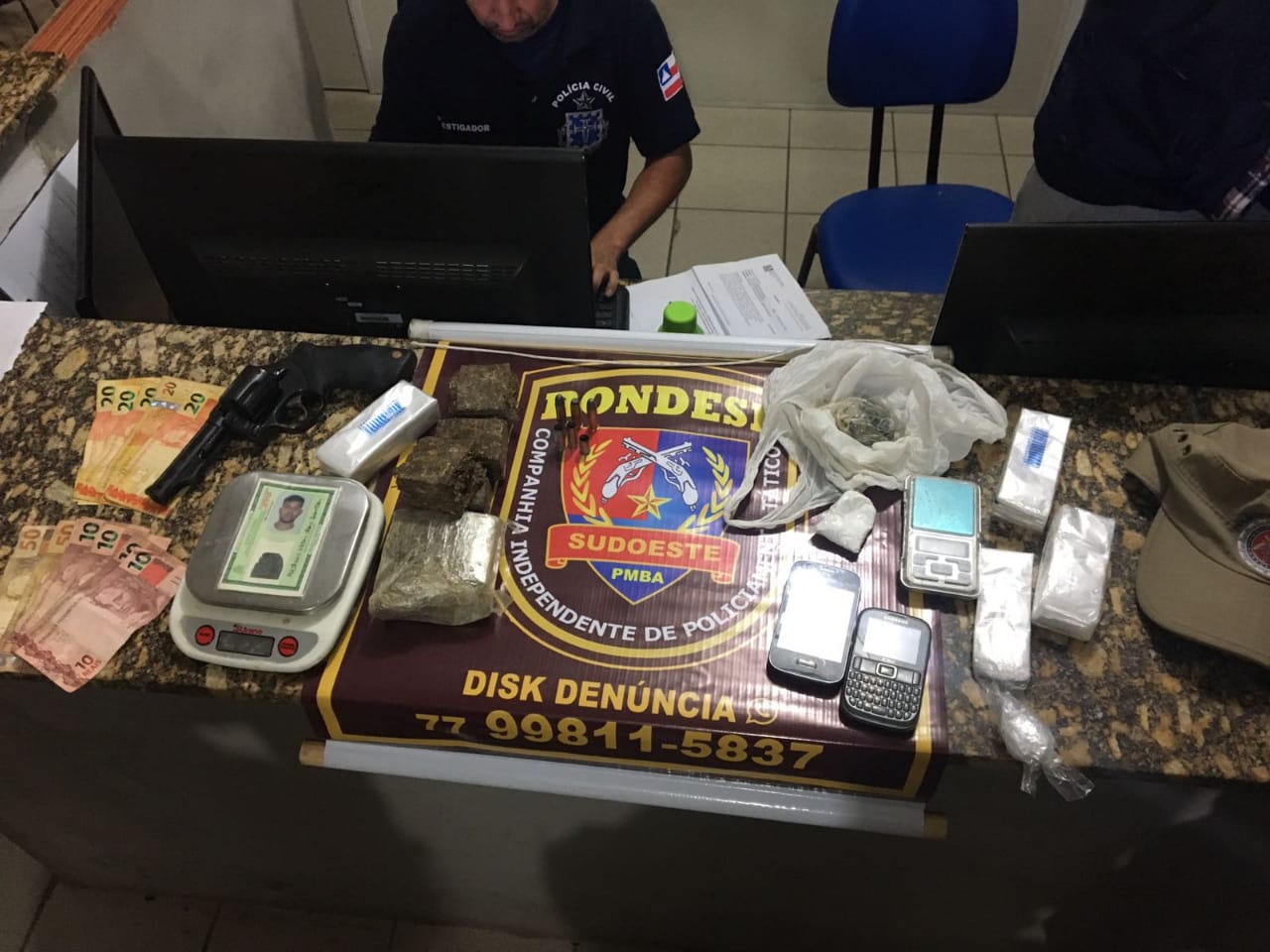 Na residência os militares encontraram 5 pedaços de uma substancia análoga à maconha, duas balanças de precisão, uma porção de pasta base de cocaína além de uma certa quantia em dinheiro. Todo material aprendido local foram apresentados do DISEP como arma de fogo com várias munições deflagradas.