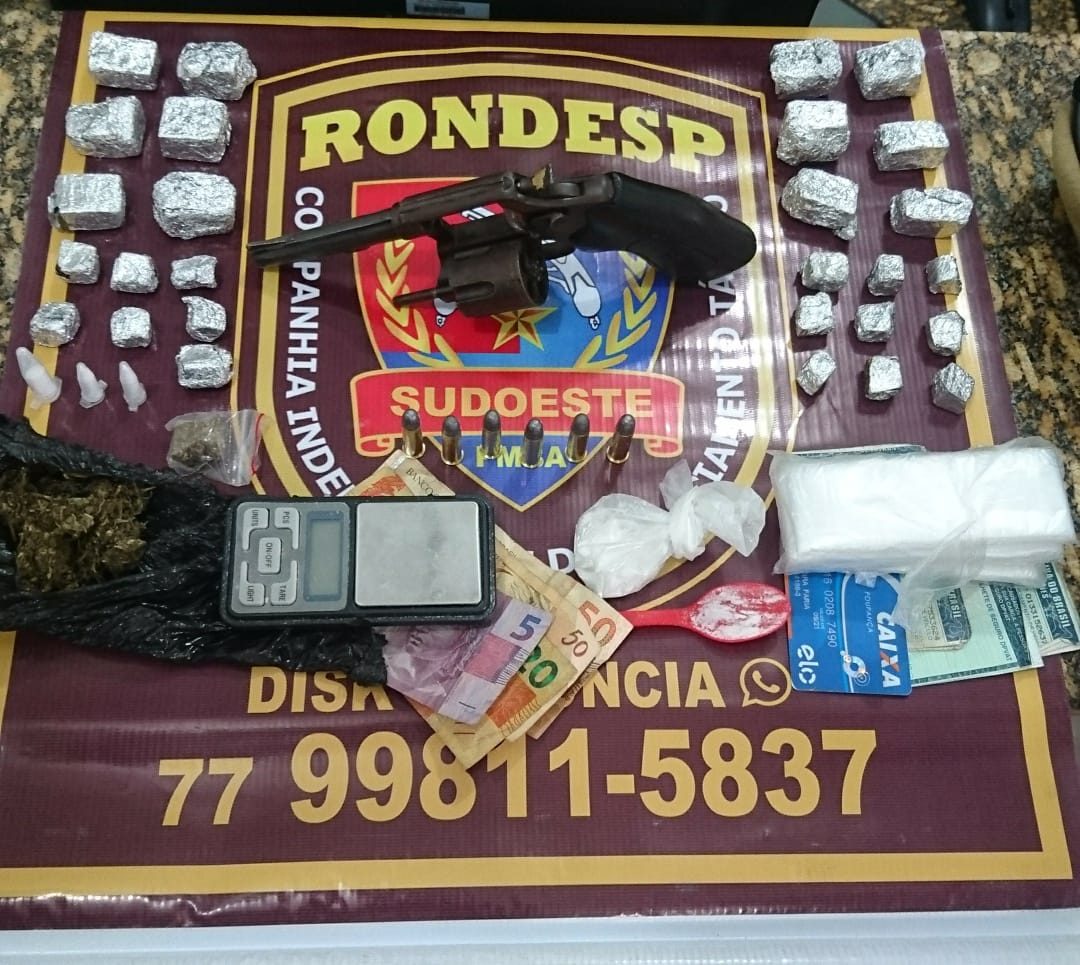 Após busca pessoal foram encontrados 3 pinos de uma substância análoga a cocaína, o indivíduo levou os policiais até a casa de Marcos Antônio onde lá foram encontradas 29 cocadas de uma substância análoga à maconha, uma balança de precisão além do revólver calibre 38 municiado. Os 2 elementos receberam voz de prisão e foram apresentados no Disep.