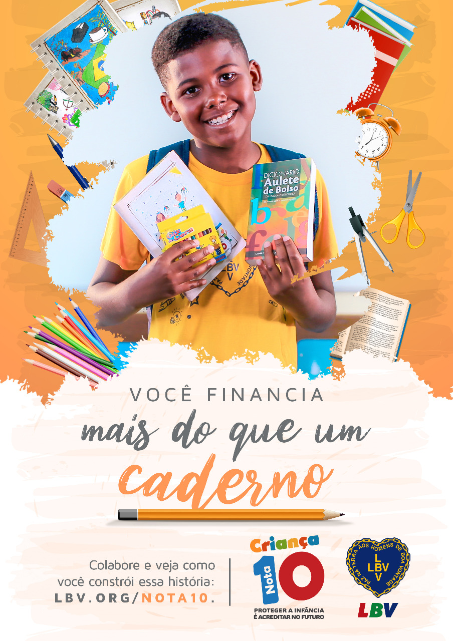 A Legião da Boa Vontade (LBV) iniciou mais uma importante campanha de mobilização social em apoio à educação brasileira: Criança Nota 10 — Proteger a infância é acreditar no futuro! A iniciativa visa angariar doações e entregar no início do ano letivo, 19 mil kits de material pedagógico para crianças e adolescentes atendidos pela Instituição e por organizações parceiras nas cinco regiões brasileiras.