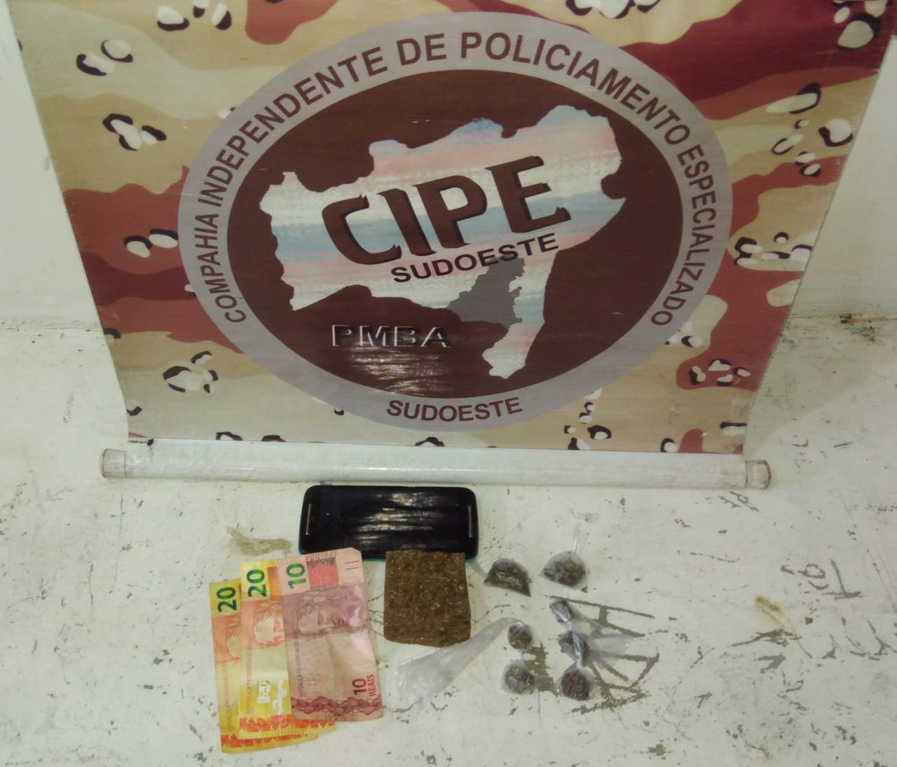 Ao proceder com abordagem o mesmo foi identificado como Denilson de Jesus Silva, sendo encontradas em seu poder 07(sete) petecas de substância análoga à maconha, 01 (um) aparelho celular e R$ 50,00 (cinquenta reais) em espécie. Indagado sobre a origem dos ilícito, o mesmo informou que havia outra quantidade em sua residência no Conveima.