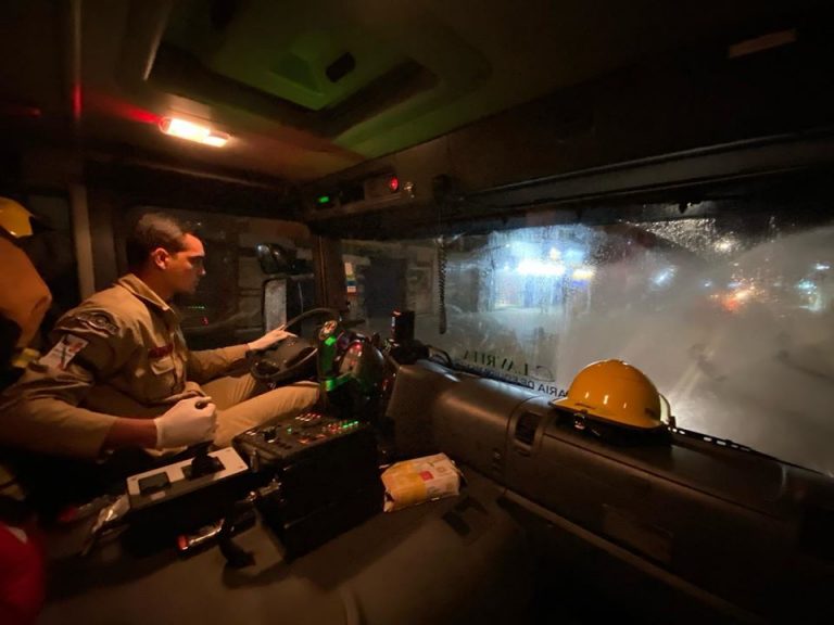 “O caminhão comporta mais de 6 mil litros de água, com uma vazão no canhão superior de 4 mil litros por minuto. Ele será reabastecido com água e o hipoclorito em alguns pontos da avenida, o que será suficiente para higienizá-la”, explica o bombeiro do aeródromo da empresa Socicam, Daniel Lemos.