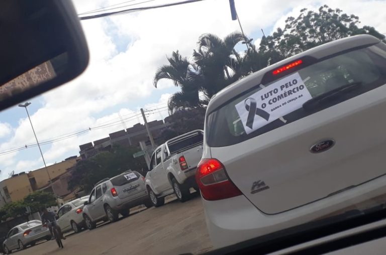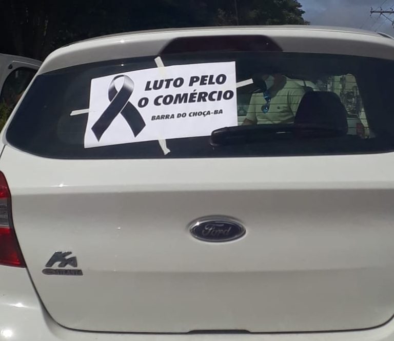 Dezenas de comerciantes e comerciários foram as ruas de Barra do Choça, na manhã deste sábado (16) em carreta protestar contra a decisão da prefeitura municipal de mais uma vez, suspender o funcionamento do comércio local. Nos veículos estavam estampados cartazes com a frase “LUTO pelo comércio de Barra do Choça”.