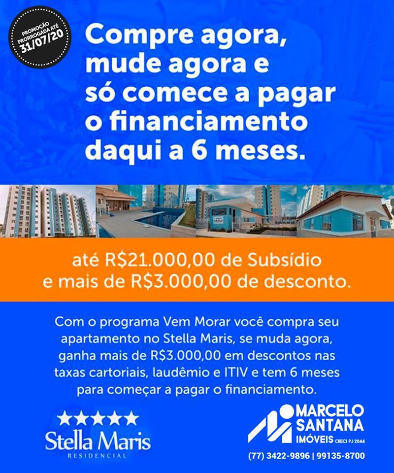 Você se muda agora e ganha mais de R$3.000,00 em descontos promocionais de taxas cartoriais, laudêmio e ITIV e tem 6 meses para começar a pagar o seu financiamento.