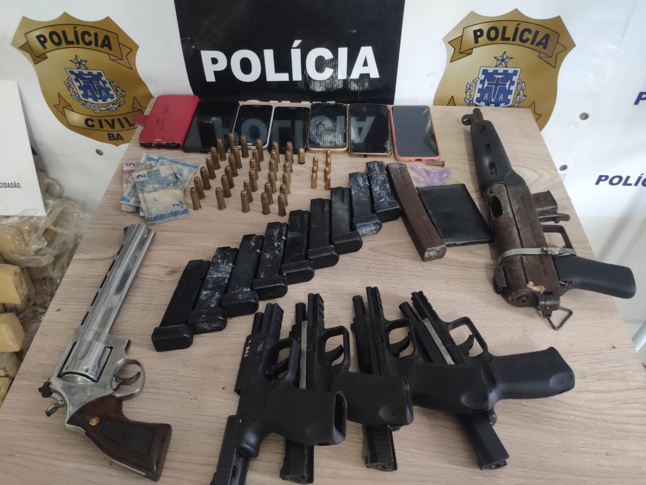 Já na manhã de hoje, o foco principal da ação foi a apreensão de drogas e armas, mantidas pela facção em uma “roça”, situada no Assentamento Santa Maria, município de Mascote, local onde o indivíduo conhecido como BUGA e seu irmão, MATEUS, mantinham armazenadas, sob seus cuidados, as drogas e armas da ORCRIM, que abasteciam Eunápolis e região. A droga apreendida está avaliada em mais de dois milhões de reais.