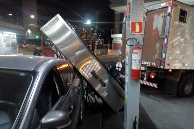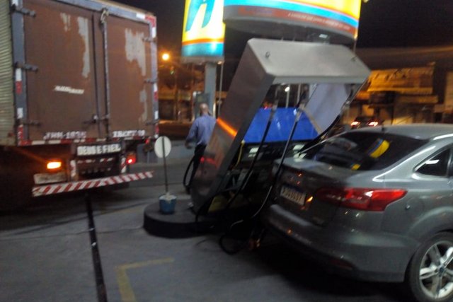 Um acidente chamou a atenção de muita gente que passou pela Praça Caixeiros Viajantes, Centro de Vitória da Conquista, na noite desta quarta-feira (15). No local um caminhão que deu ré acabou batendo numa bomba do Posto de Combustíveis que em seguida atingiu um carro que estava abastecendo. Ninguém ficou ferido. O Sistema Municipal de Trânsito foi acionado para o registro da ocorrência.