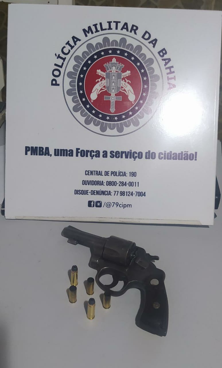 01 revolver Cal. 38, marca Rossi, Numeração suprimida, três munições deflagradas e duas intactas;
