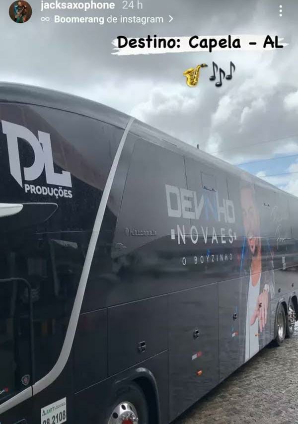 A caminho do show em Capela, o saxofonista postou em seu perfil nas redes sociais foto do ônibus e uma selfie dentro do veículo.