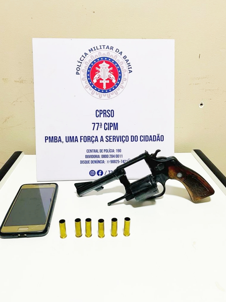 01 Revólver calibre 38, contendo 06 cartuchos deflagrados.