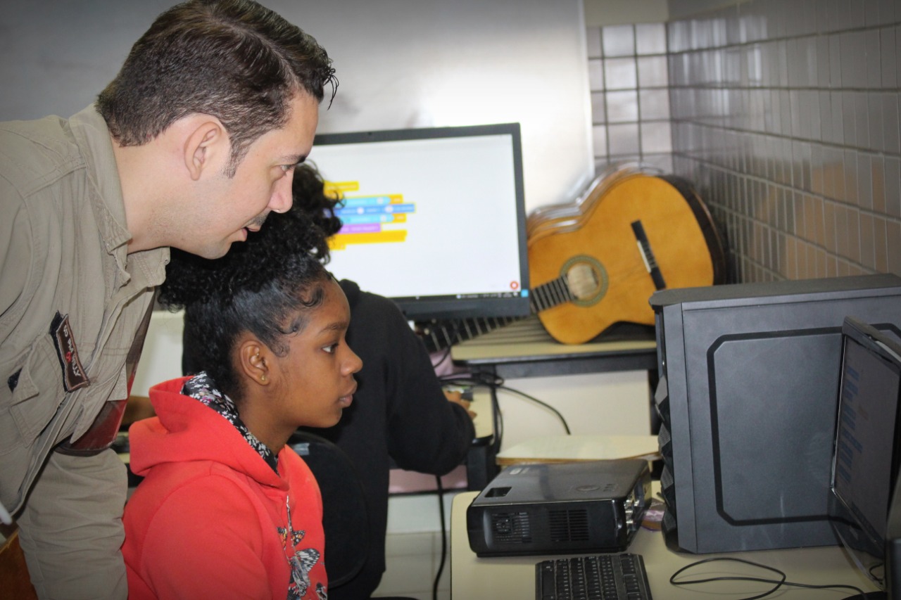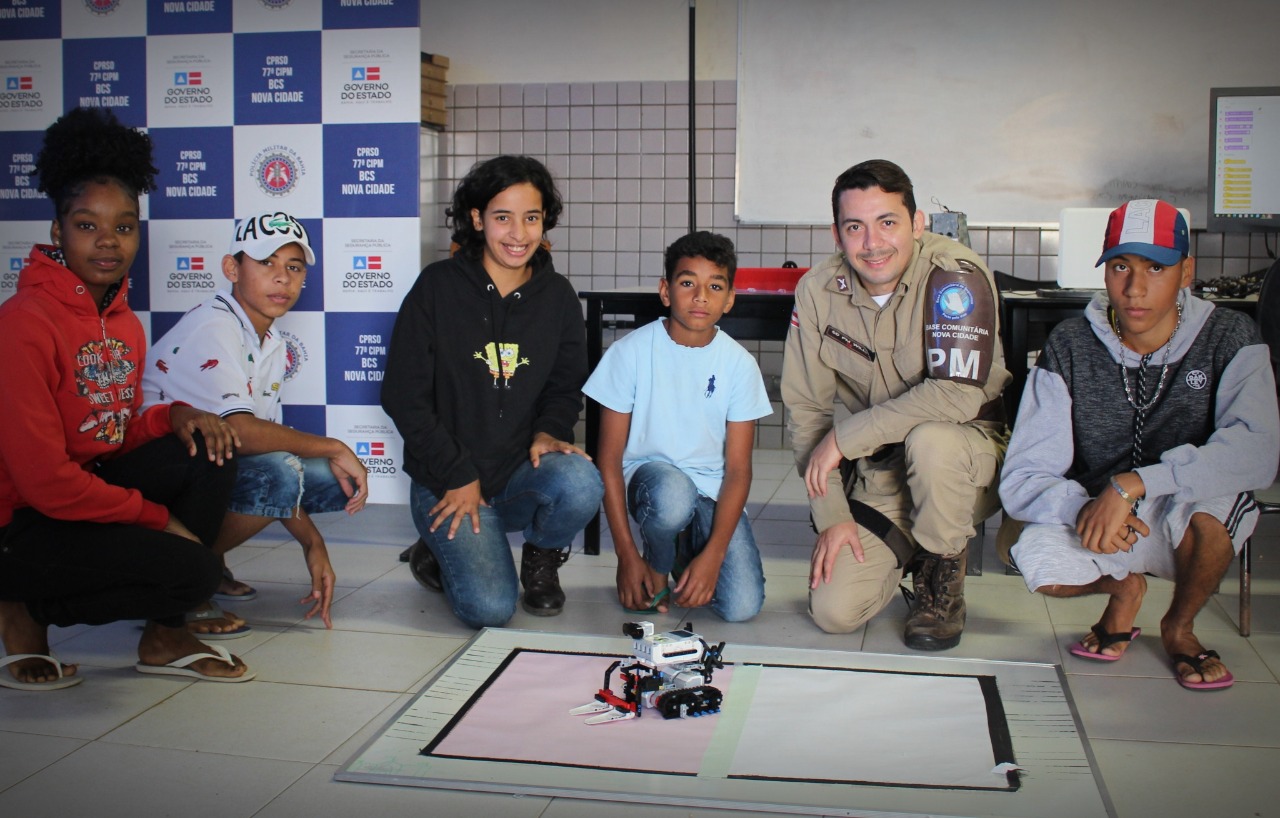 A 77ª CIPM através da sua Base Comunitária está promovendo o curso de Robótica para 12 alunos, sendo 2 turmas contendo cada uma 6 alunos. O instrutor é o SD PM Willy Iglesias, Engenheiro da Computação. O pré-requisito para participação no curso de robótica é ter concluído o módulo de informática básica. Este Projeto de robótica é interdisciplinar, englobando assim as matérias de Matemática, Física, Programação e Artes.