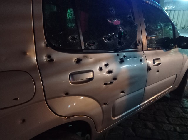Na noite deste sábado (11), um motorista de aplicativo que conduzia um Uno cinza foi surpreendido quando levava um passageiro ao Motel Lago Azul, localizado na Avenida Eduardo Fróes da Mota, no bairro Conceição, em Feira de Santana. Ao parar na portaria do Motel, o seu veículo foi alvejado com vários tiros efetuados por homens desconhecidos.