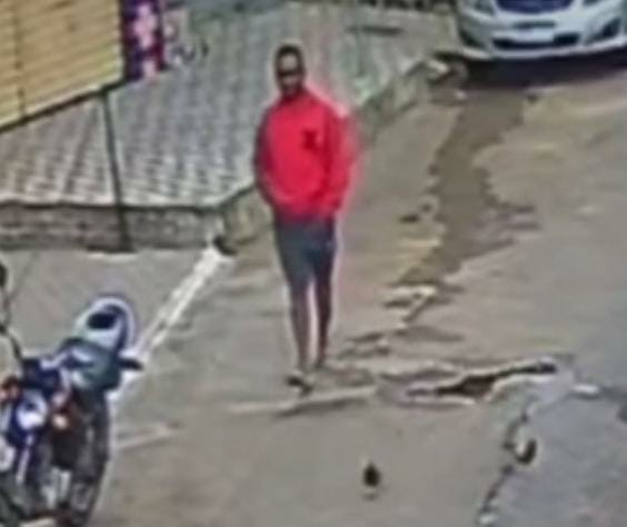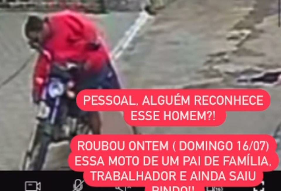 A polícia está a procura do indivíduo que aparece nas imagens. Se você tiver qualquer informação sobre o paradeiro do meliante ou da moto, favor acionar a polícia através do 190( lembrando que não precisa se identificar).