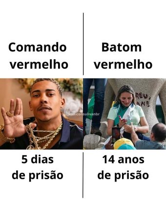 Esses casos têm gerado debates sobre a proporcionalidade das penas e a equidade no sistema judiciário brasileiro. Enquanto um artista investigado por envolvimento com facção criminosa é liberado após poucos dias, uma mãe de família enfrenta uma longa pena por um ato simbólico.