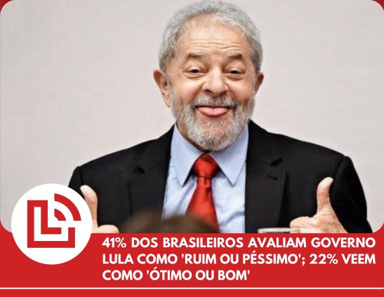 Uma nova pesquisa realizada pelo PoderData, divulgada nesta quarta-feira (30), mostra que a gestão do presidente Luiz Inácio Lula da Silva (PT) é considerada “ruim ou péssima” por 41% dos eleitores brasileiros.