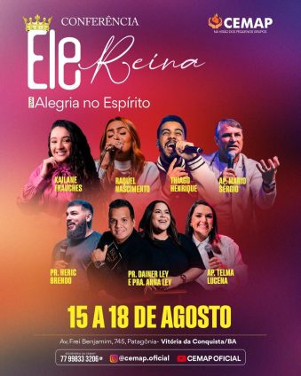 De 15 a 18 de agosto, Vitória da Conquista será palco de um dos maiores eventos evangélicos da região: a Conferência “Ele Reina Alegria no Espírito”, realizada pela Igreja CEMAP, em comemoração ao aniversário da instituição. (mais…)