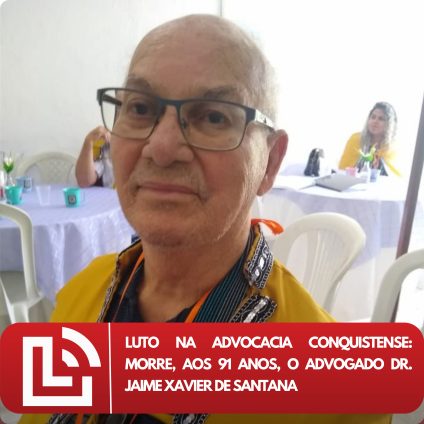 É com profundo pesar que o Blog do Léo Santos comunica o falecimento do advogado Dr. Jaime Xavier de Santana, aos 91 anos, ocorrido em Vitória da Conquista.