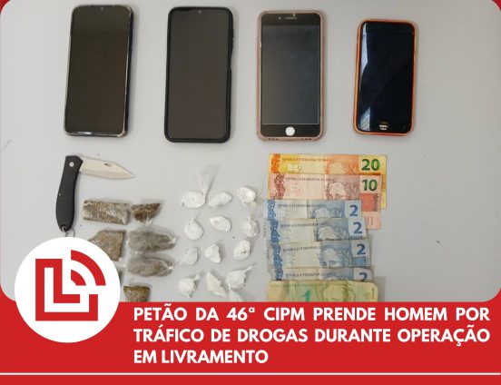 O Pelotão de Emprego Tático Operacional (PETO) da 46ª CIPM prendeu um homem por tráfico de drogas durante uma operação no centro de Livramento de Nossa Senhora, na última terça-feira (12).