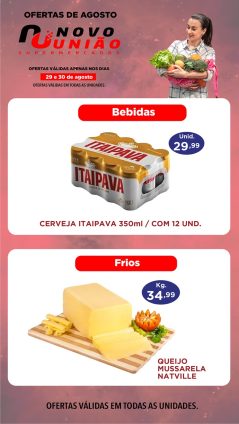 O Novo União Supermercados preparou uma rodada de ofertas imperdíveis para você encher o carrinho e economizar neste fim de semana. Mas corra, porque os preços são válidos apenas nesta sexta-feira (29) e no sábado (30) de agosto!