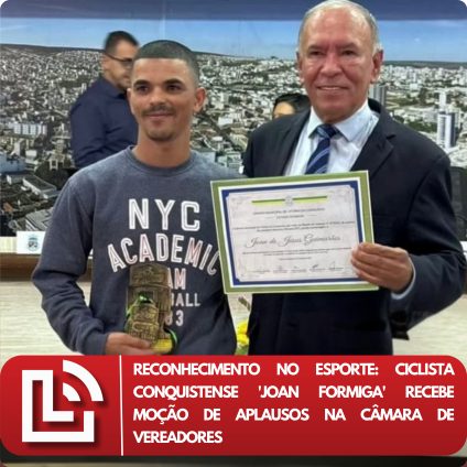 RECONHECIMENTO NO ESPORTE: Ciclista conquistense ‘Joan Formiga’ recebe Moção de Aplausos na Câmara de Vereadores