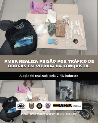 (CIPE/Sudoeste) no final da tarde desta sexta-feira (5), em Vitória da Conquista. Um homem foi preso com mais de 1,5 kg de cocaína.