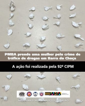 Na noite desse sábado (13), uma mulher foi presa por tráfico de drogas na cidade de Barra do Choça. A ação foi realizada por Policiais Militares da 92ª Companhia Independente de Polícia Militar (CIPM) Rural. (mais…)