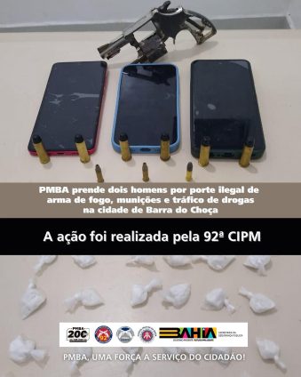 Uma ação da Polícia Militar, por meio da 92ª Companhia Independente de Policiamento Rural (CIPM), resultou na apreensão de uma arma de fogo, munições, drogas e dois veículos na cidade de Barra do Choça. (mais…)