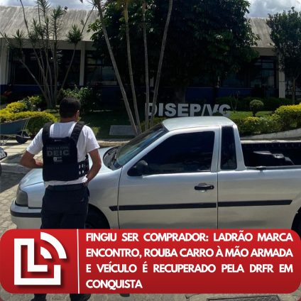 A Delegacia de Repressão a Furtos e Roubos (DRFR) de Vitória da Conquista recuperou, na última quarta-feira (17), um carro que havia sido roubado através do “golpe do falso comprador”. O veículo foi localizado abandonado em um terreno baldio no Bairro Brasil.