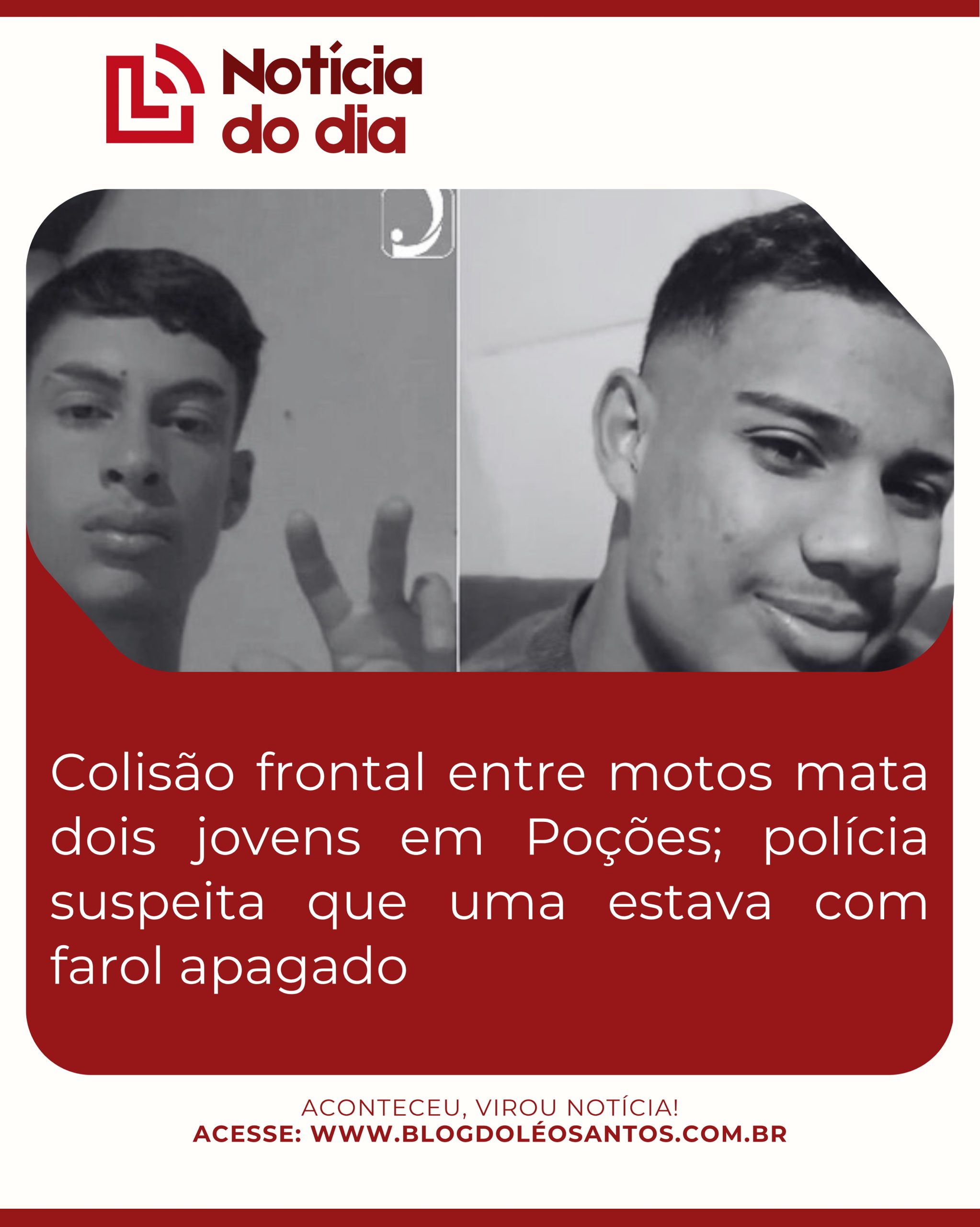 Uma tragédia marcou a noite deste sábado (18) em Poções, no Sudoeste baiano. Dois motoboys, que trabalhavam como entregadores de lanches, morreram após uma forte colisão frontal entre motocicletas.