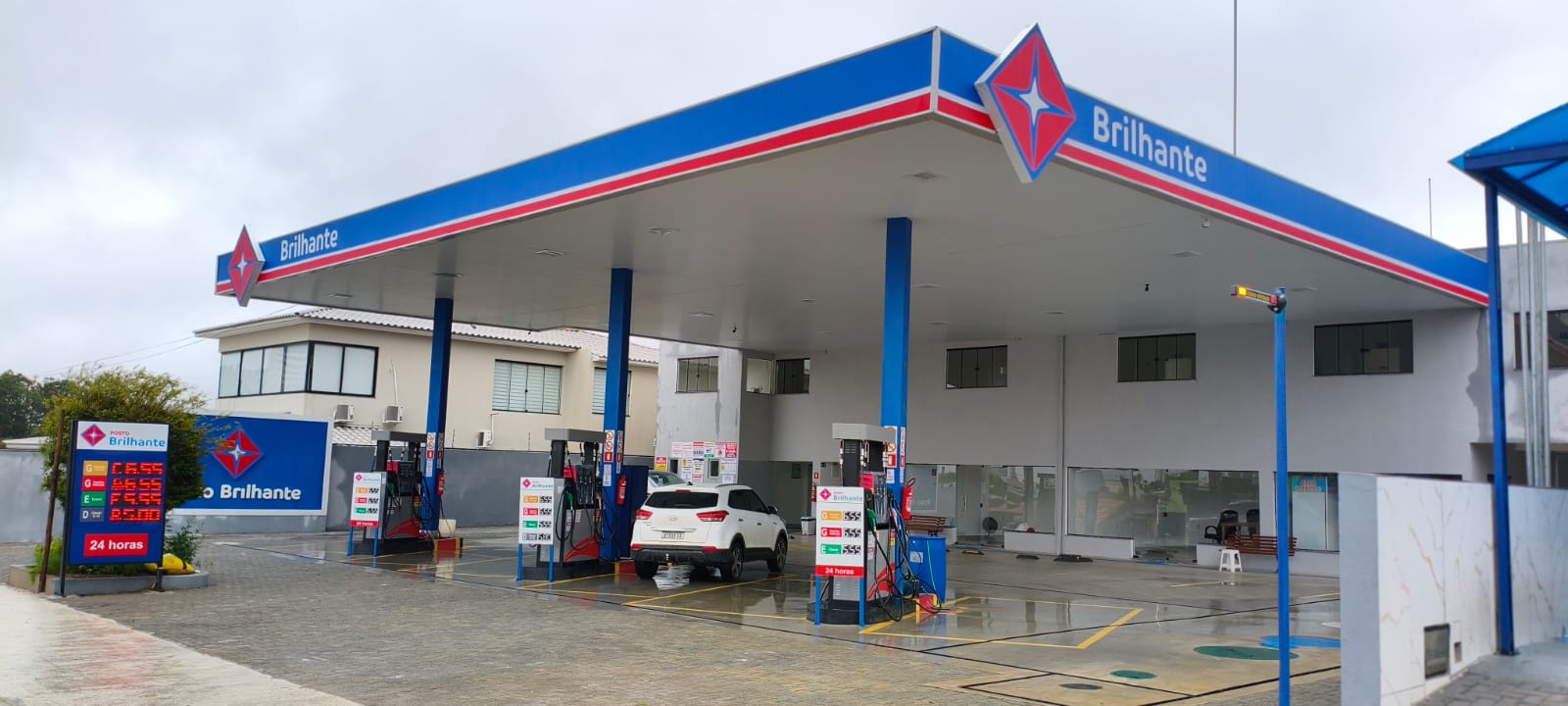 Outro grande diferencial do Posto Brilhante é o seu funcionamento. Tanto o posto de combustíveis quanto o serviço de ducha expressa operam 24 horas por dia, oferecendo mais conveniência para todos os motoristas, a qualquer hora do dia ou da noite.