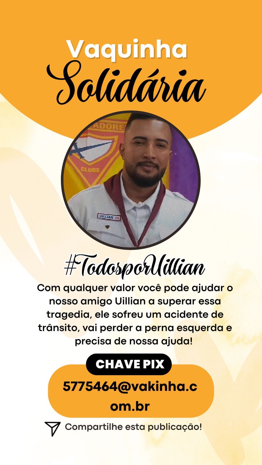 Amigos e familiares de Uillian se uniram em uma corrente de solidariedade para ajudá-lo a superar um momento trágico. O jovem sofreu um grave acidente de trânsito enquanto ia para casa almoçar e, em decorrência dos ferimentos, precisará amputar a perna esquerda.