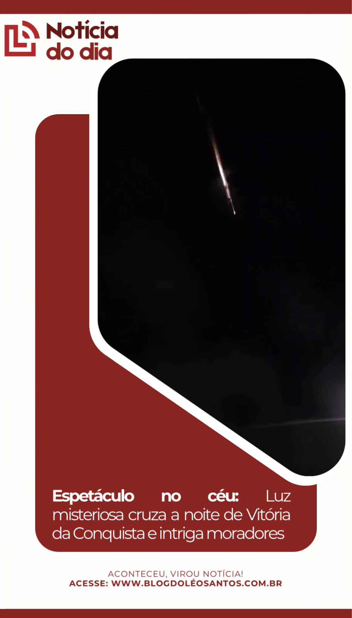 A noite de Vitória da Conquista foi palco de um verdadeiro espetáculo celeste nesta segunda-feira (27). Por volta das 22h, uma bola de fogo, um rastro de luz brilhante e alaranjado, cortou o céu da cidade, surpreendendo e maravilhando os moradores que tiveram a sorte de presenciar o fenômeno.