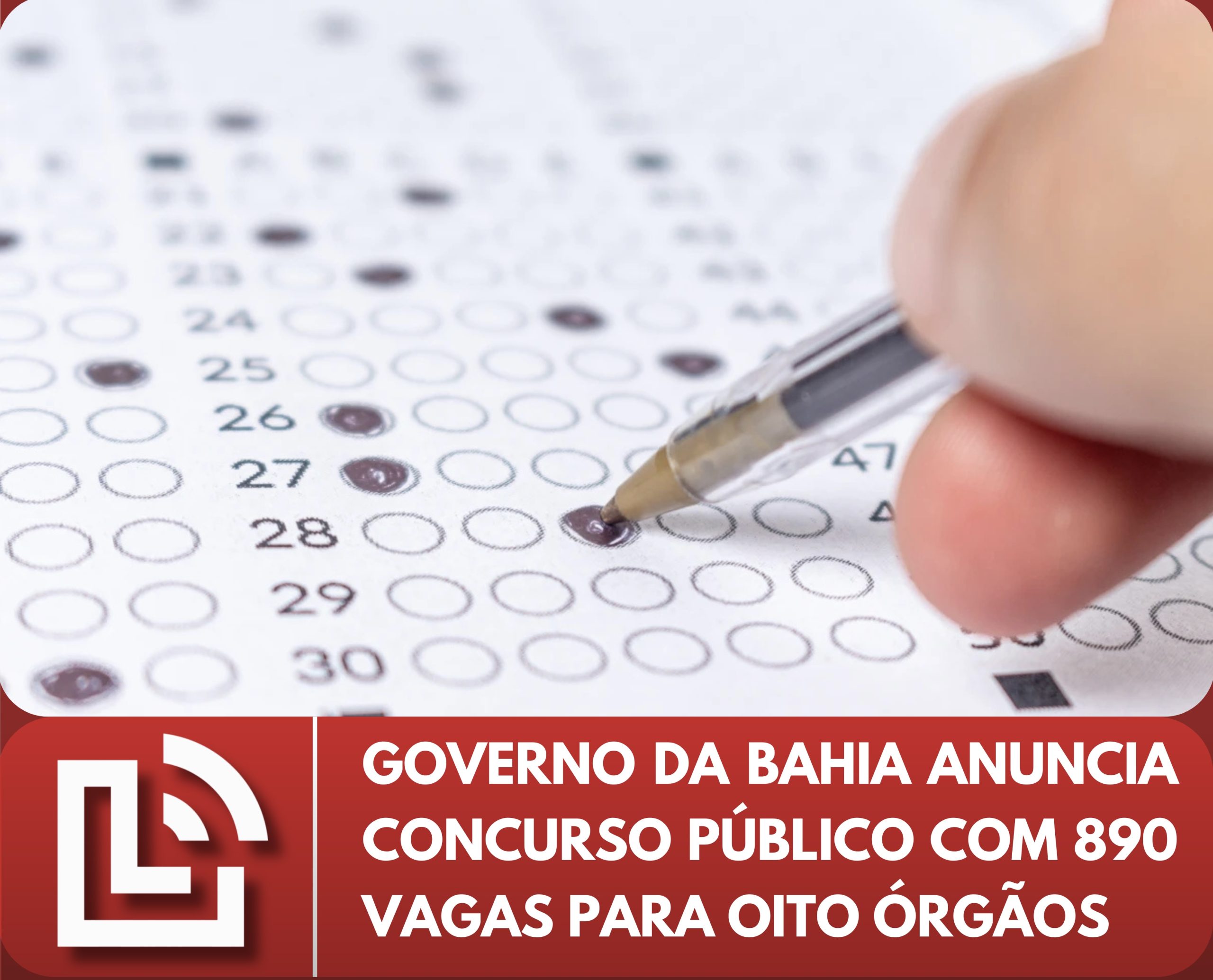 O Governo da Bahia anunciou nesta terça-feira (28) a autorização para a realização de concursos públicos que visam preencher 890 vagas em oito diferentes órgãos e secretarias estaduais. A informação foi detalhada em um evento oficial, onde foram apresentados os cargos e o impacto financeiro previsto para os próximos anos.
