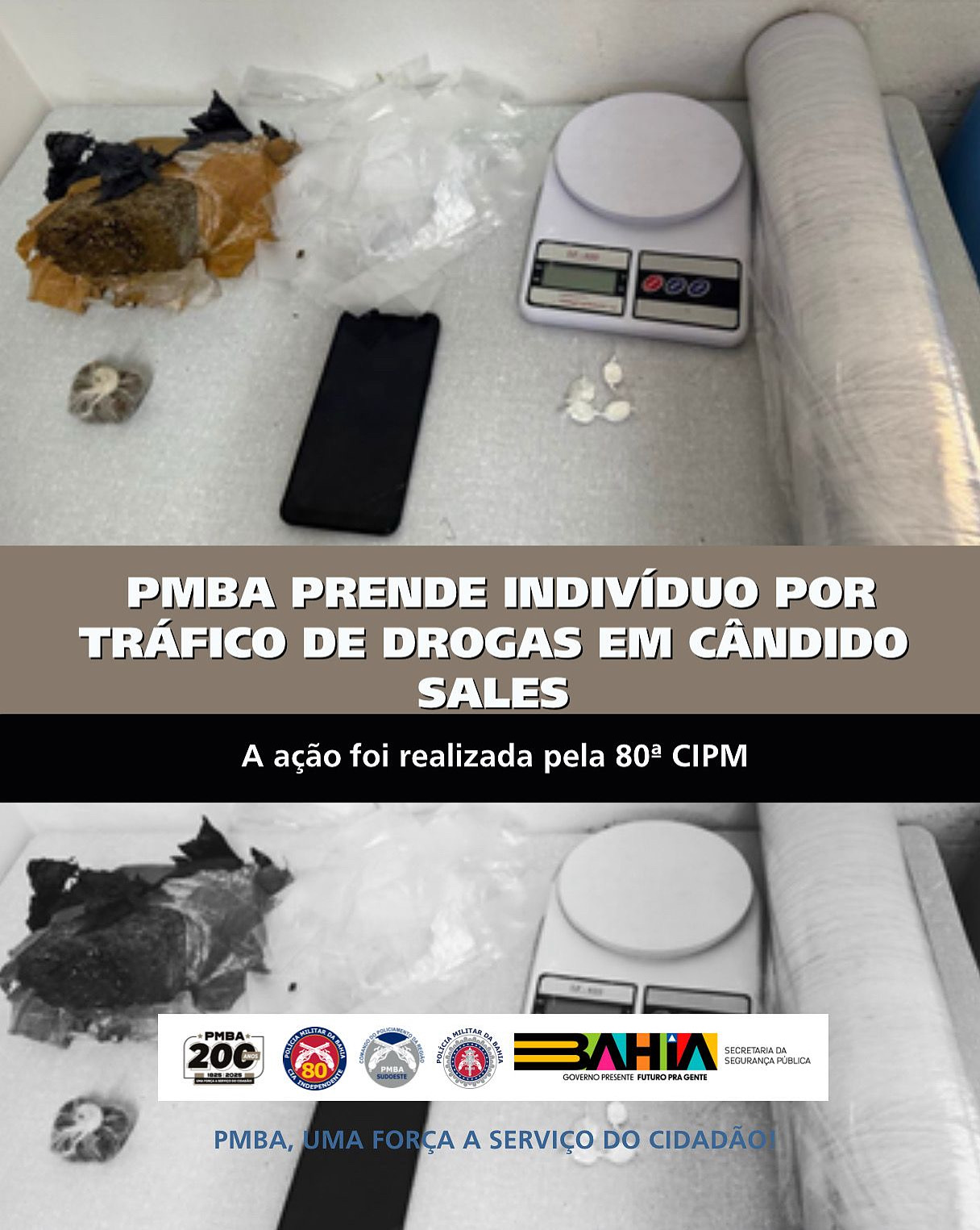 Diante dos fatos, o homem e todo o material apreendido foram conduzidos para a Delegacia de Polícia de Cândido Sales para a adoção das medidas legais cabíveis.