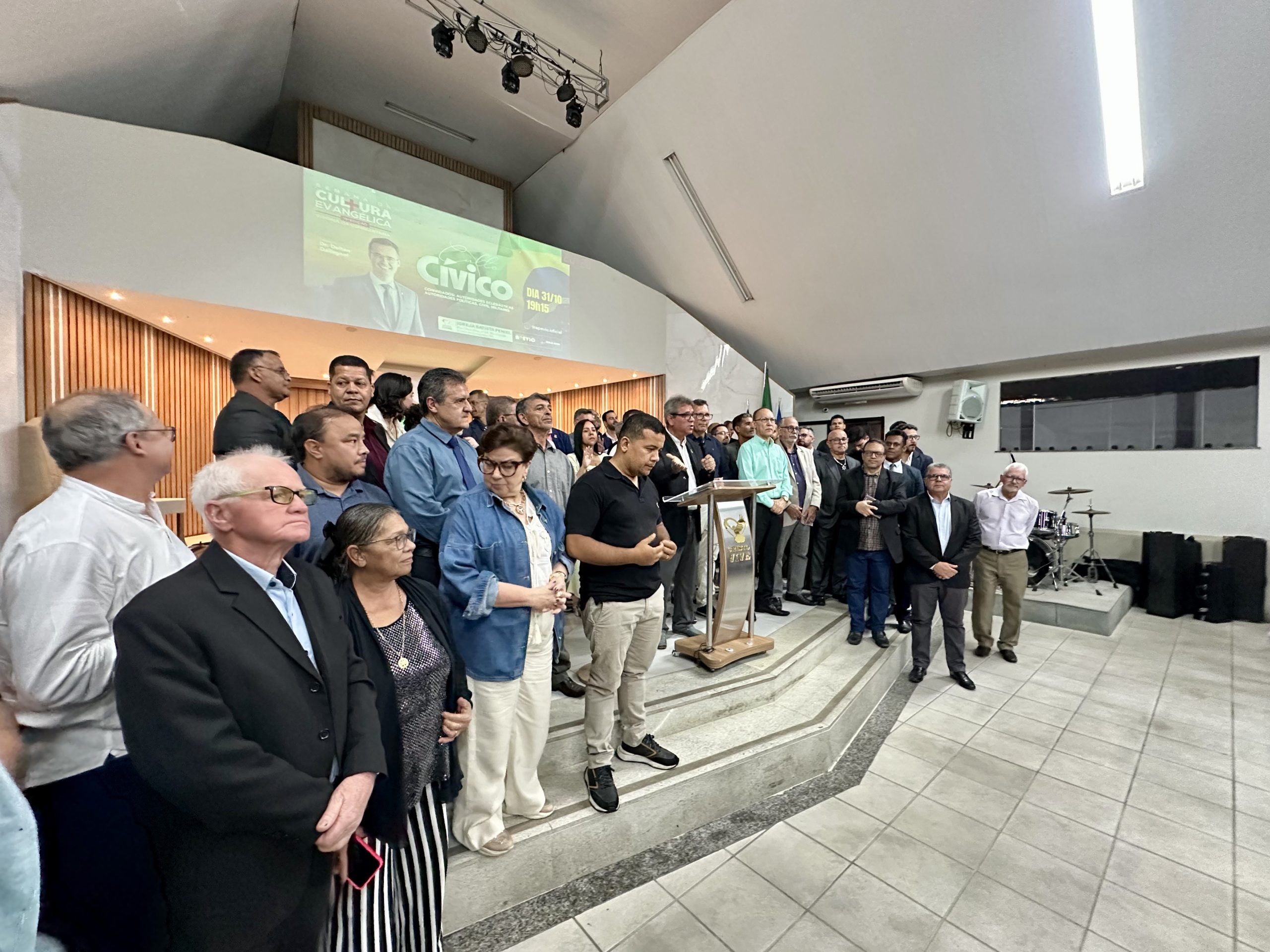 Sheila Lemos aproveitou a oportunidade para agradecer as orações da comunidade evangélica pela sua gestão e pela cidade, e pediu que continuem orando por sabedoria e proteção. Ela ressaltou a necessidade de vigilância e fé em um mundo com tanta violência, pedindo a Deus que livre a cidade de todo o mal.