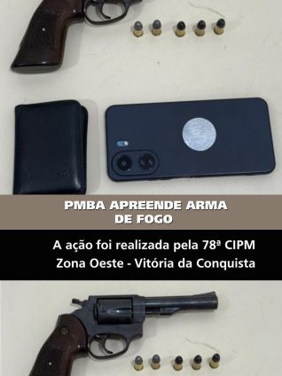 Uma ação rápida de guarnições do PETO 78 e PETO Motos, durante a Operação Força Total, resultou na prisão de um homem e na apreensão de uma arma de fogo na noite de quarta-feira (15), por volta das 19h30, no bairro Brasil, em Vitória da Conquista.