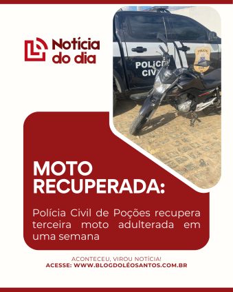 As equipes da Delegacia Territorial de Poções recuperaram mais uma motocicleta com sinais de identificação adulterados e registro de furto/roubo na última quinta-feira (16). Esta é a terceira apreensão de um veículo em situação irregular realizada pela Polícia Civil no município apenas nesta semana.