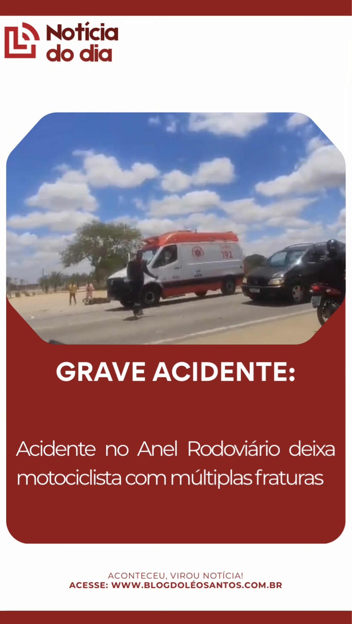 Um grave acidente deixou um motociclista gravemente ferido na alça do Anel Rodoviário, em Vitória da Conquista. A colisão ocorreu na entrada do bairro Terras do Remanso, acesso que também leva à Lagoa das Bateias.