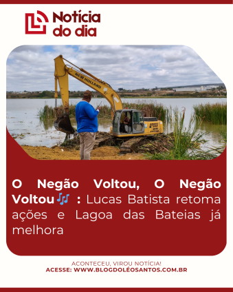 Após seu retorno, Lucas Batista já está em plena atividade, e o Parque Ambiental da Lagoa das Bateias começou a receber uma grande ação de limpeza e revitalização. As equipes retomaram o trabalho de retirada de materiais orgânicos, com foco na recuperação das laterais e, principalmente, na desobstrução dos canais.