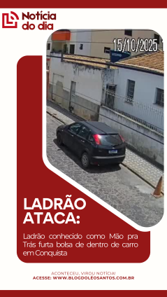 Ladrão conhecido como Mão pra Trás furta bolsa de dentro de carro em Conquista